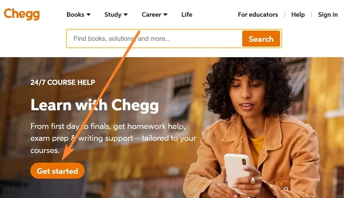 • You will be redirected to the Learn With Chegg page, here tap on the orange-colored Get Started button.